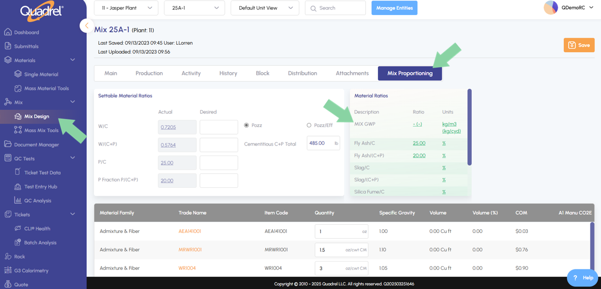 When viewing a mix, users can now switch to the Mix Proportioning tab and view the Mix GWP in the material ratios.