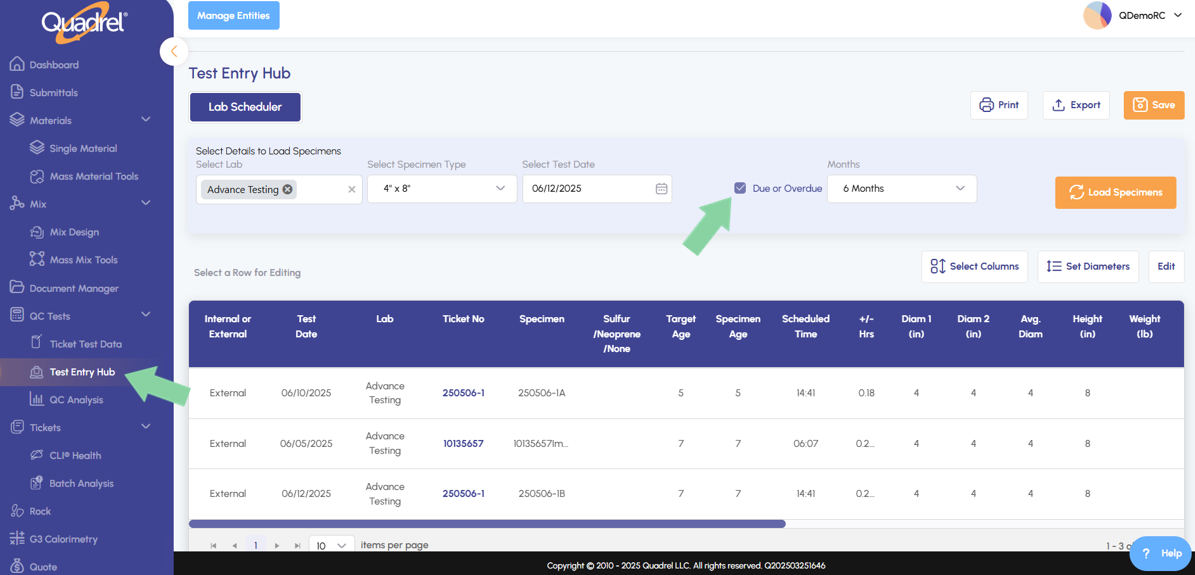 Mix GWP added into material ratios when applicable on the mix proportioning tab. - Test Entry Hub: Due or Overdue