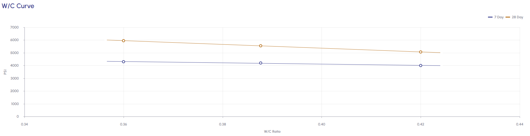 Once the desired batches have been added, click "W/C Curve Graph" to generate the W/C Curve.