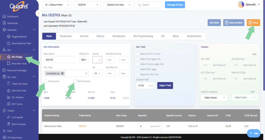 - A user can assign a mix utilizing the checkboxes to be prescriptive, performance, both, or neither. Be sure to click save after making any intentional changes.