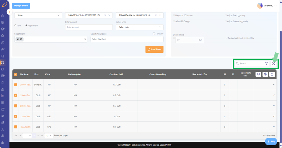Users will notice reduced wait times for advanced searches related to mixes and batches. - Mix Design: Upload from Mix Grid and Distribution