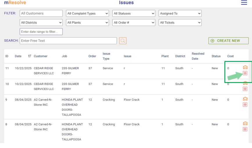 - mResolve users can now delete incidents as shown in the screenshot below.