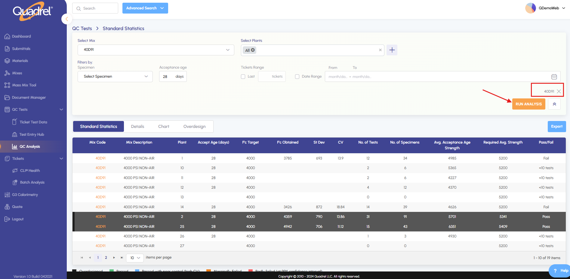 Select a mix ( or mixes) under QC Analysis and click Run Analysis.