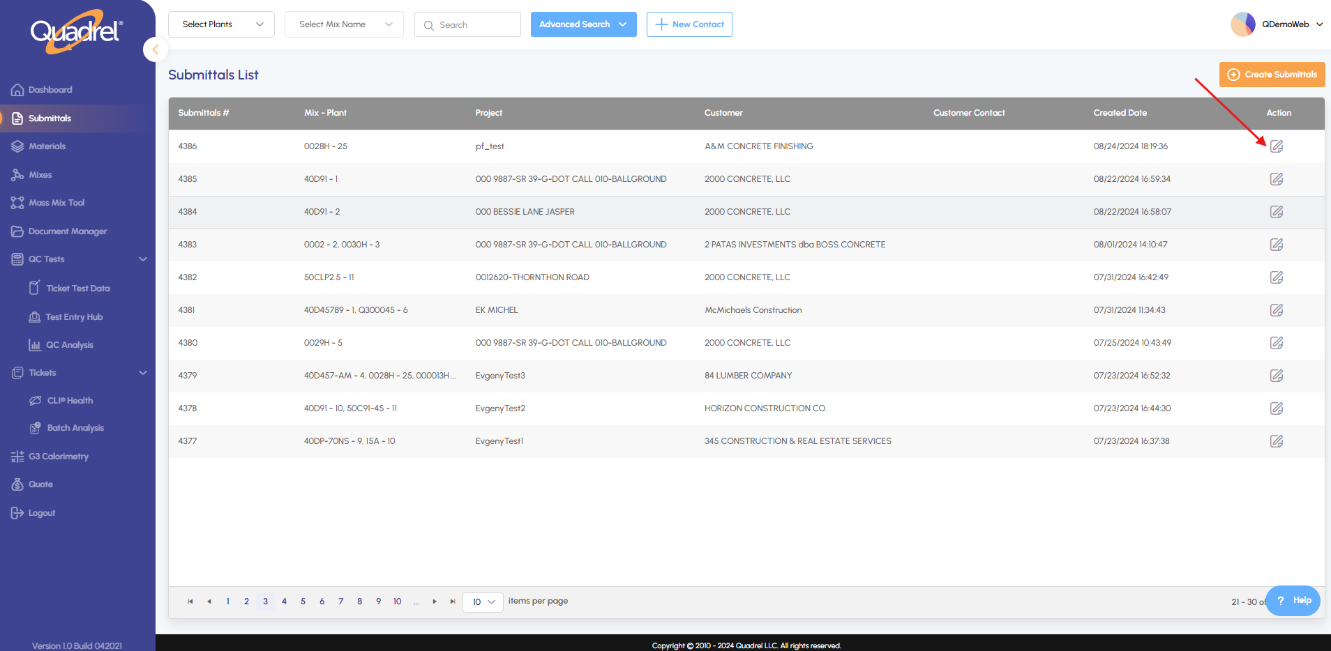 Navigate to the submittals menu and click the edit icon for your chosen submittal.