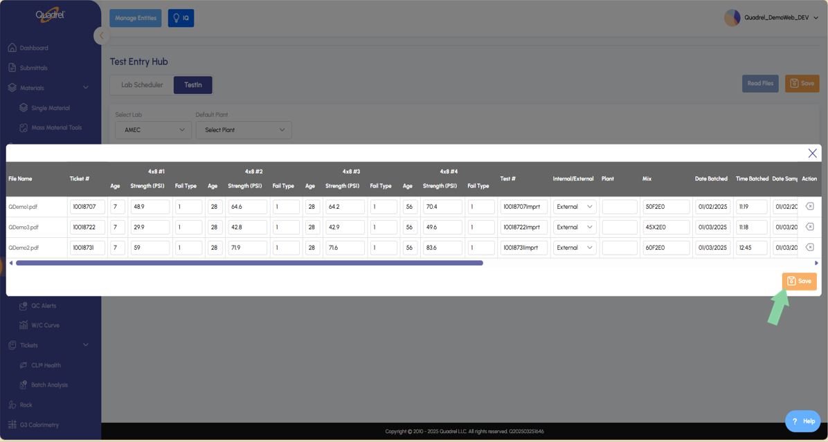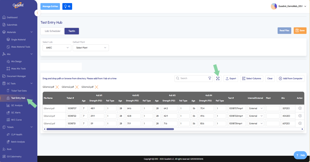 Users with access to AI TestIn can now forward test data from their labs directly to Quadrel and have the ticket test data extracted and imported automatically.