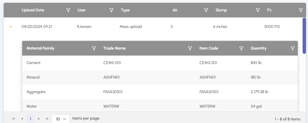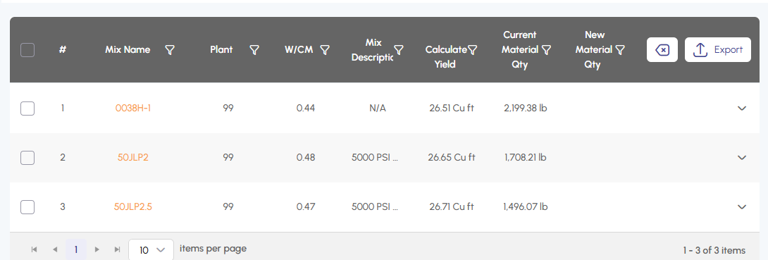 Quickly swap materials in mixes across multiple plants. - Mix History