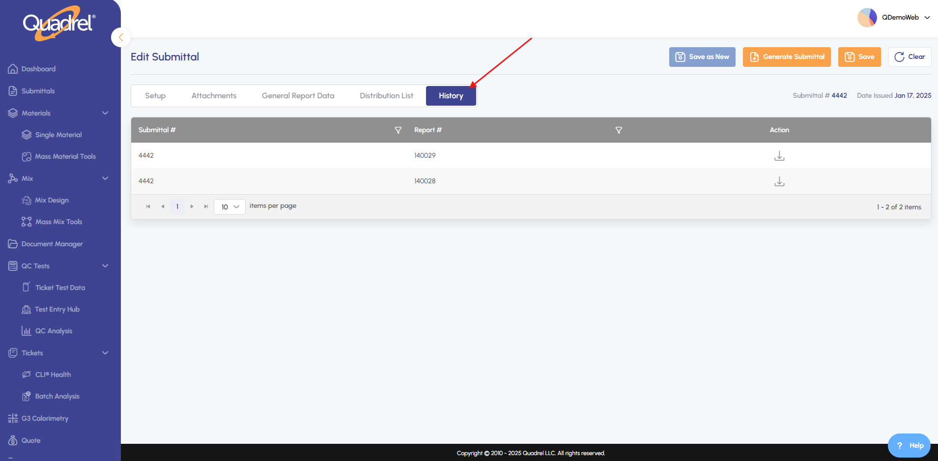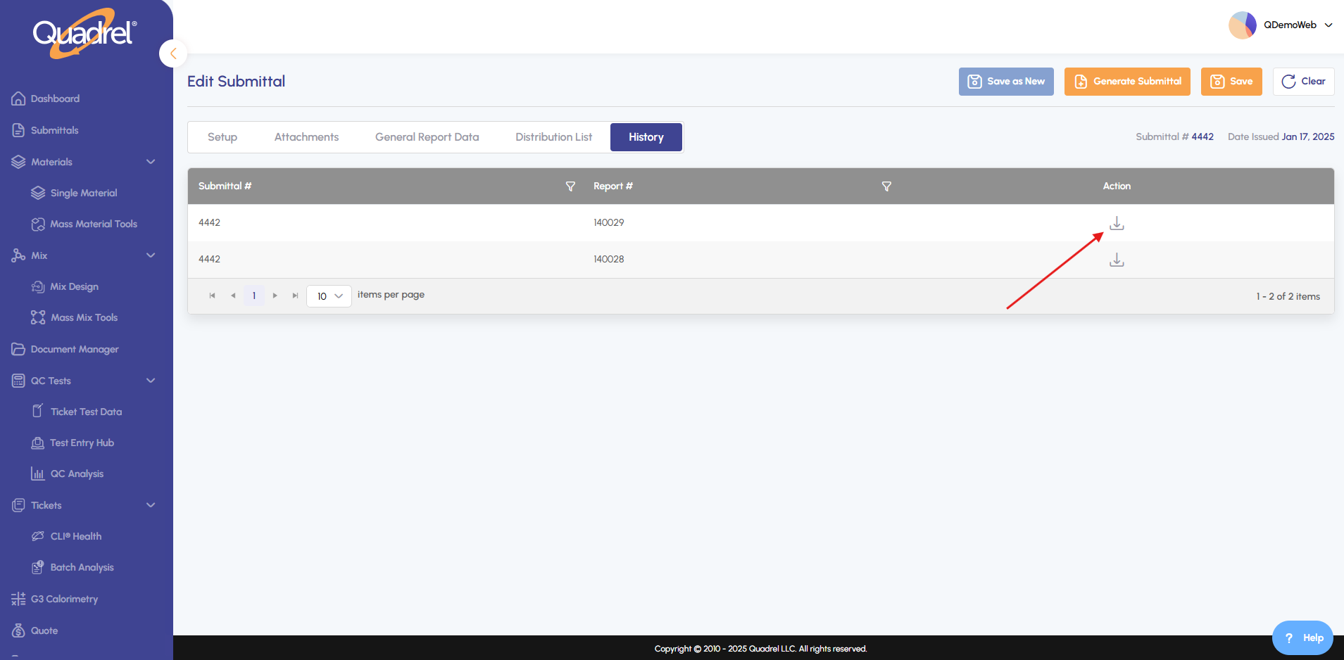 2. Locate the most recent submittal version and click its download icon.